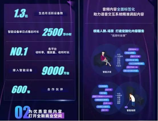 以往用戶購買一份內(nèi)容通常會在APP之中收聽,而伴隨智能音箱的普及化,用戶還能夠在睡前或者開車時收聽內(nèi)容,除此以外,APP里的會員數(shù)據(jù)與微信小程序、百度智能小程序之中可以打通,同一份產(chǎn)品消費的使用場景多了三個以上,會員的使用頻次、時長以及粘性也大幅度提升。這也意味著,那些沒有更強產(chǎn)品開放能力中小知識付費平臺的使用體驗也沒有辦法和頭部平臺之間競爭。據(jù)悉,蜻蜓FM全場景生態(tài)月活躍用戶數(shù)達到1.3億,全年增長近30%,智能設(shè)備單日收聽總時長達2500萬小時,接入智能設(shè)備9000萬臺,合作伙伴600家;主打開源化的蜻蜓FM音頻生態(tài)在各平臺中內(nèi)容收聽率、播放量及播放時長三大數(shù)據(jù)均居行業(yè)第一。