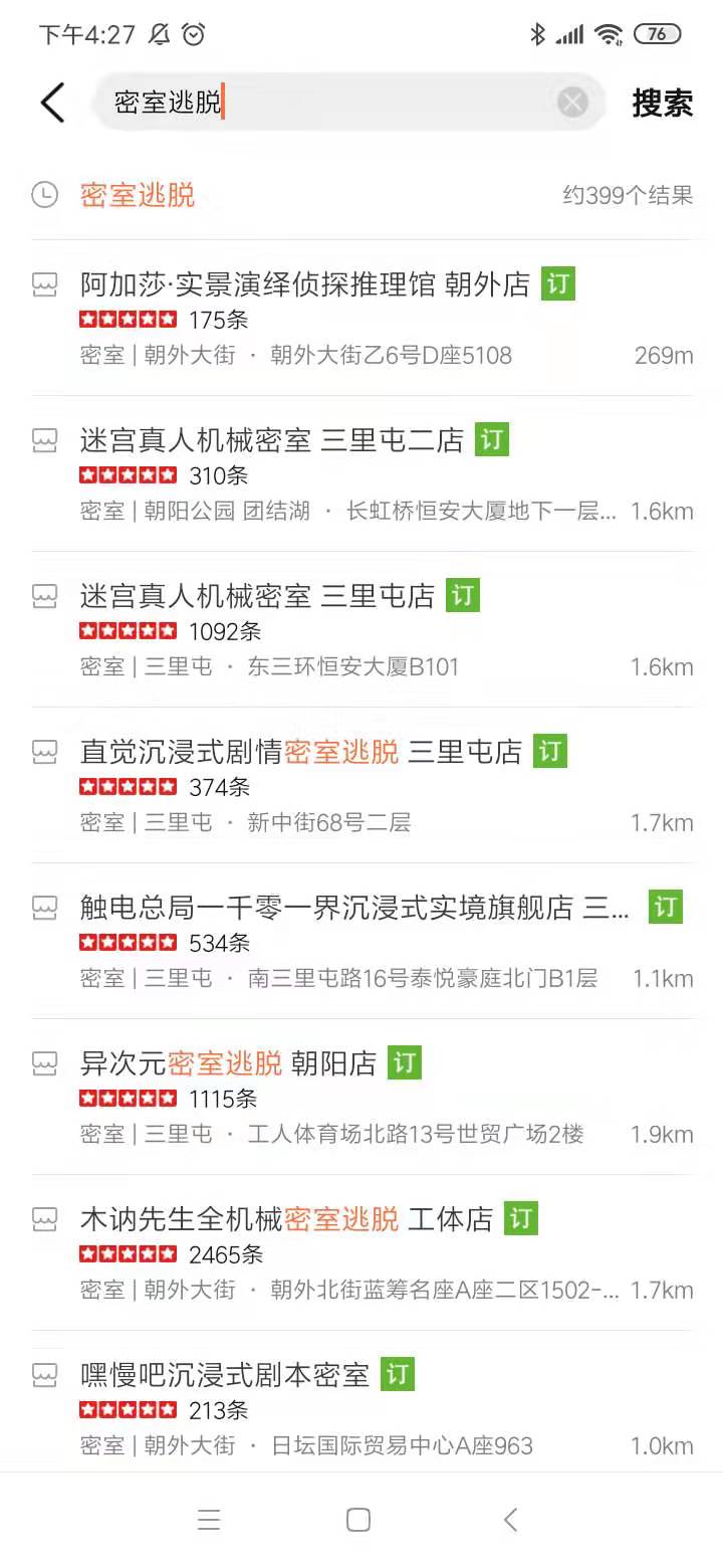在大眾點評上搜索之后才發現,密室逃脫已經成為了很多人的冒險選擇。