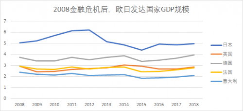 2008年那場(chǎng)金融危機(jī)給各國(guó)經(jīng)濟(jì)造成了巨大危害,中國(guó)政府第一時(shí)間貨幣政策和財(cái)政政策雙拳出擊,在G20集團(tuán)里面最先走出危機(jī)。美國(guó)通過多輪量化寬松的方式,將危機(jī)轉(zhuǎn)移給全球其它國(guó)家,也逐漸走出危機(jī)。但歐洲、日本等國(guó),10多年來從未真正從那輪危機(jī)中走出,其GDP規(guī)模和人均收入在這10年間并未有大的進(jìn)步。