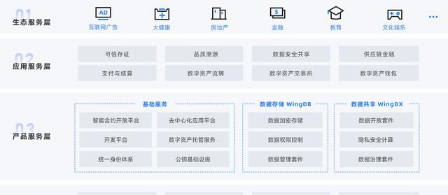 《鏈飛區塊鏈白皮書V1.0》以“區塊鏈+大數據”為核心特色,覆蓋區塊鏈底層基礎設施(WingChain)、大數據隱私服務工具(WingDB、WingDX)以及鏈飛區塊鏈落地場景等方面內容,構建出涵蓋基礎設施-產品服務-應用服務-生態服務四方面的完整閉環。