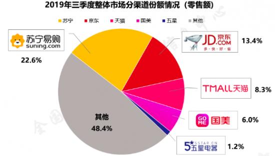 又比如蘇寧小Biu,強(qiáng)大的渠道能力是其底氣所在。據(jù)中國家用電器研究院和全國家用電器工業(yè)信息中心聯(lián)合發(fā)布的《2019年中國家電行業(yè)半年度報(bào)告》數(shù)據(jù)顯示,2019年上半年蘇寧以22.4%占比全渠道份額第一,2019年第三季度同樣以22.6%的市場份額遙遙領(lǐng)先。