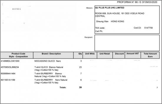 香港供應商的采購發票