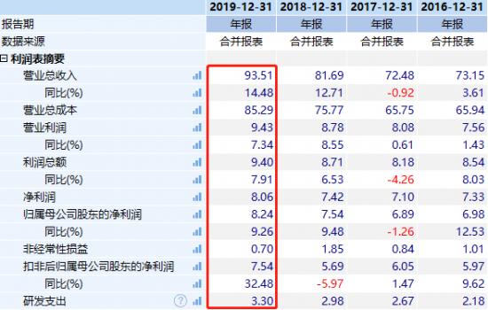 近日,國內小家電品牌的九陽股份(002242.SZ)發布了2019年財報,全年實現營業收入93.51億元,同比增長14.48%,歸母凈利潤8.24億元,同比增長9.26%。