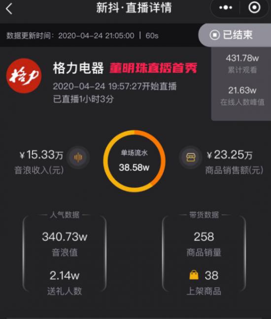 (董明珠近日上抖音和快手直播帶貨數據對比)