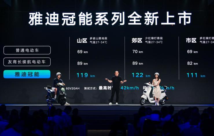 (雅迪冠能系列新品搭載60V20Ah電池,一次充電最遠(yuǎn)跑出了122公里的新紀(jì)錄)
