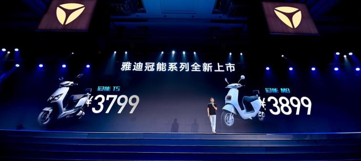 (雅迪集團(tuán)高級(jí)副總裁王家中宣布價(jià)格:冠能M8售3899元,冠能T5售3799元)