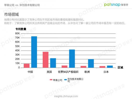 報告顯示,華為的專利數量幾乎為蘋果的3倍,達到206931組,在專利的地域分布上,蘋果公司除了在美國、韓國、澳大利亞、中國臺灣等少于幾個國家和地區優于華為之外,其他區域市場華為均大幅領先。