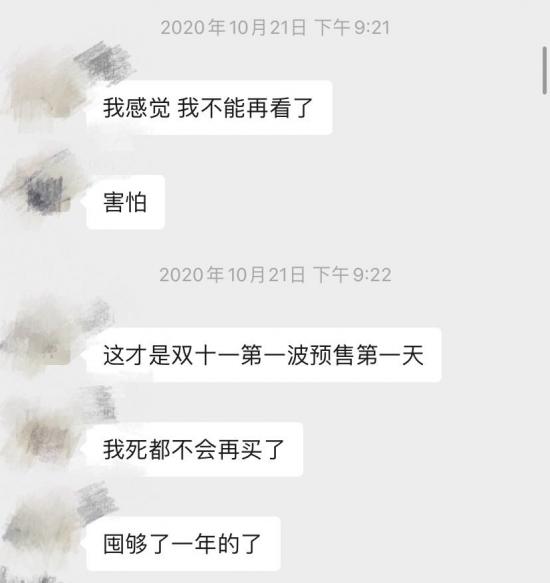 “螳螂財經”的朋友就表示,雙十一第一波預售的第一天,她就在薇婭的直播間囤夠了一年的貨。