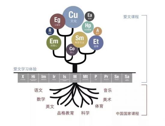 愛文世界學校在對學生的能力培養上,和托尼·瓦格納決勝未來的十大能力有異曲同工之妙。像下圖這個酷似元素周期表的圖,就是愛文為學生做出的設計—愛文世界元素(Avenues World Elements,AWE),這是由愛文專屬研發團隊泰格工作室(The Tiger Works)歷經數年打造,是涵蓋了從幼兒園到高中每個階段核心教學成果的學習模塊體系。60種元素,自由融合入11種學習體驗,最大限度激發老師的創造力和學生的學習熱情。