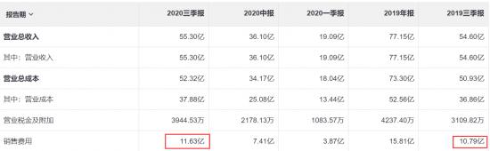 也不難猜,毛利率不變,利潤卻下滑,多數跟營銷費用過多脫不了關系。截止今年Q3,良品鋪子銷售費用已經比去年多了一億多,今年Q3的銷售費用是4.22億元,去年是3.74元,跟凈利潤比較一下,利潤越來越少,費用卻越來越多。