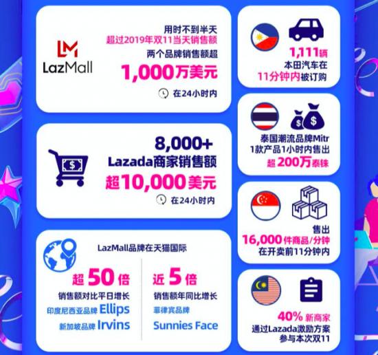 數(shù)字當(dāng)然是重要的。今年雙11,Lazada有超過(guò)4000萬(wàn)用戶和40萬(wàn)個(gè)品牌和商家參與,實(shí)現(xiàn)1100萬(wàn)美元銷售額僅用時(shí)100秒,多項(xiàng)數(shù)據(jù)刷新東南亞電商大促新紀(jì)錄。東南亞的天貓——Lazada的品牌商城LazMall,用了不到半天時(shí)間就超去年全天成交額,有26個(gè)品牌當(dāng)天的銷售額超過(guò)100萬(wàn)美元,成為全球品牌贏取東南亞市場(chǎng)的一個(gè)重要入口。