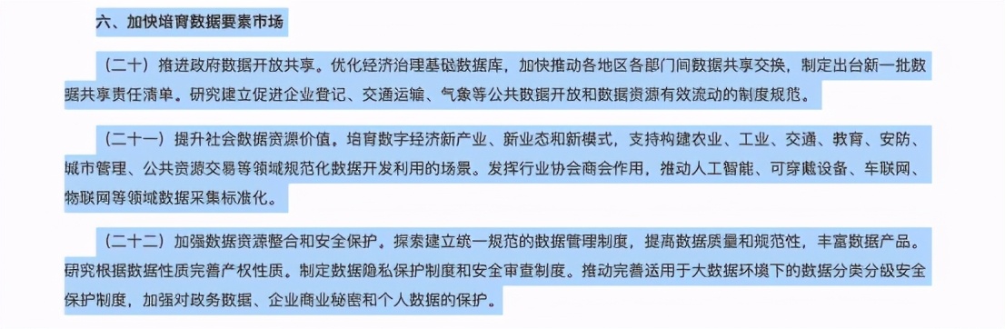 國家在政策號召上也做出了明確指示,《中共中央 國務院關于構建更加完善的要素市場化配置體制機制的意見》第一次把數據與土地、勞動力、資本、技術并列為生產要素,并強調了“加快培育數據要素市場”。