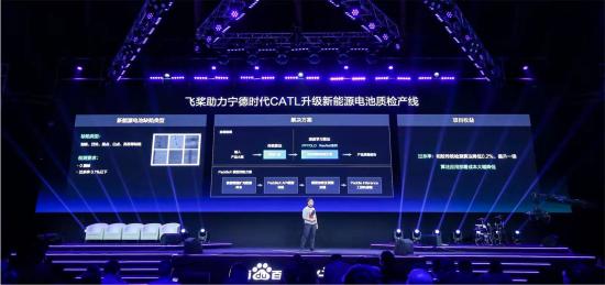 再比如,寧德時代為解決產(chǎn)品品控和生產(chǎn)效率的問題,需要計算機視覺的大量應(yīng)用,百度飛槳提供了視覺檢測方面的能力,將寧德時代的產(chǎn)品瑕疵目標從百萬分之一提高到十億分之一。