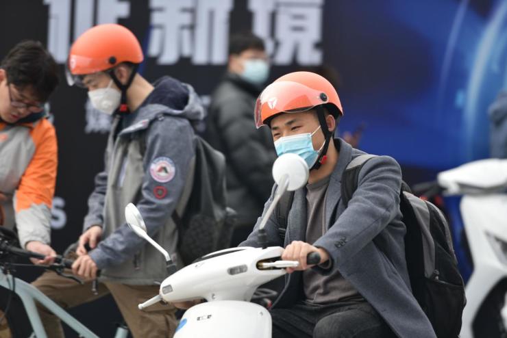 媒體現場試騎雅迪電動車