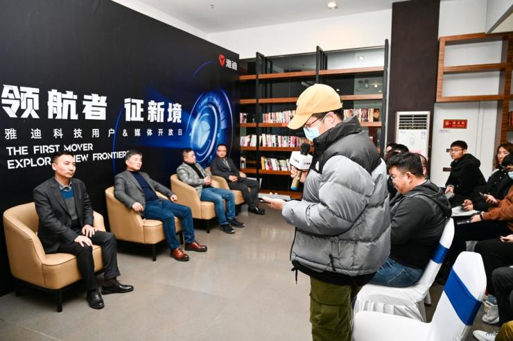 雅迪高管與媒體現場探討技術相關內容
