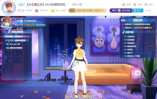 AI艾靈在B站直播間接受彈幕點(diǎn)歌,和粉絲互動(dòng)