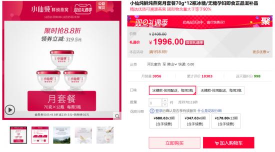也就是說,購物燕窩的人群不僅逐漸呈年輕化的趨勢,花銷還不少,月花千元吃燕窩是什么概念?參考網紅品牌“小仙燉”的產品套餐,也就是每周吃上3罐,一月得連著吃。