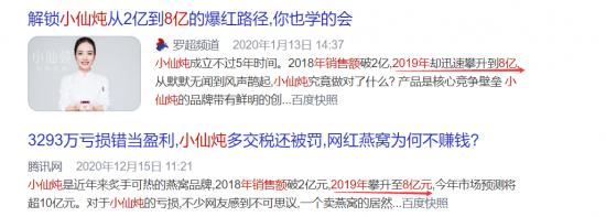 但之前曾有媒體報道小仙燉旗下的北京市小仙遁電子商務公司被統計局處罰,因為其錯誤登記“營業利潤”,將虧損3293.4萬元的營業利潤,錯報為盈利3293.4萬元。