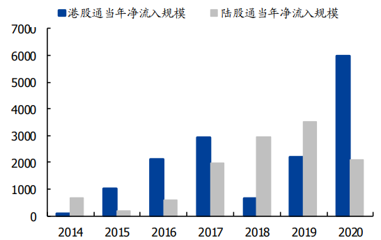 但隨著近年來國內(nèi)資金持續(xù)南下流入港股,已成為港股市場一股不可忽視的力量。根據(jù)國盛證券的測算,2020年港股通參與的交易已占到港股市場總成交額18%左右。