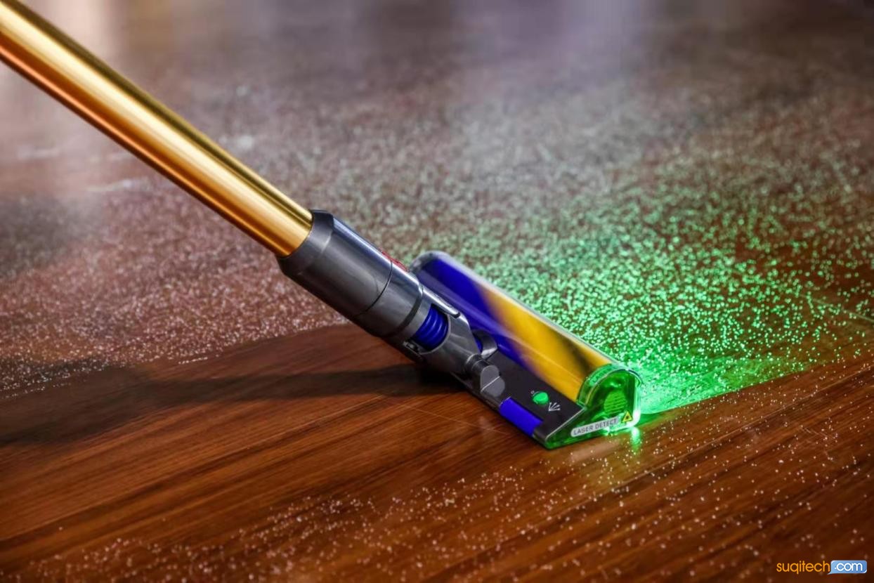 比如,在刷頭上添加探照燈,這個設(shè)計在國內(nèi)吸塵器產(chǎn)品中早早的就出現(xiàn)了,只不過采用的是LED照射燈,而戴森跟上了國產(chǎn)的步伐,終于在刷頭上添加了燈,只不過換成了綠色激光。