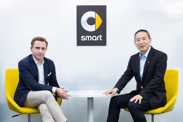 smart品牌全球合資公司全球CEO佟湘北先生,銷售、市場(chǎng)和售后副總裁李德思(Daniel Lescow)合影