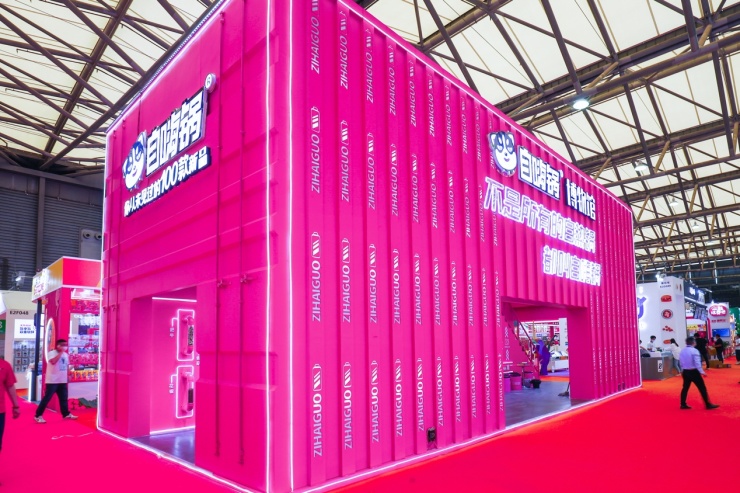 除了被推出的系列新品震撼到外,展位的設計新穎,也是顛覆了傳統“展位”的概念。本屆中食展自嗨鍋品牌更是在外觀上大膽采用了雙層集裝箱樣式搭建呈現,整體外觀獨樹一幟。顏色上以醒目的品牌色玫紅色為主色調,創造出一個造型獨特、色彩奪目的自嗨館。從現場來看,在眾多展位中脫穎而出,不僅整體設計獨特新穎,更在細節之處創造力十足。為了兼顧美觀與實用性,展位屏幕采用了外觀透明,像冰晶一樣透明的“冰屏”,其全新的結構設計,自由的DIY設計、可滿足各類產品的模塊化需求;展位背面則采用流水式燈管設計,追求科技感與美感的共存;展位內部采用箭頭燈以及工業管道風格的結構設計,讓現場一番觀眾沉浸于270°式逛展體驗中,內部分區合理,同時能夠容納1000余款產品展出,同時又能給予視覺帶來強大沖擊感,吸引了一波又一波的廠商駐足參觀。