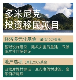 多米尼克投資移民項目提供了兩種申請方式,申請人可以向經濟多元化基金捐款,或投資于預先經過政府批準的房地產項目,包含多家豪華酒店可供選擇。成為多米尼克公民便能夠享受在多米尼克工作、學習和生活的權利。投資移民項目的資金被用于改變多米尼克的經濟和重振其公民的生活質量。