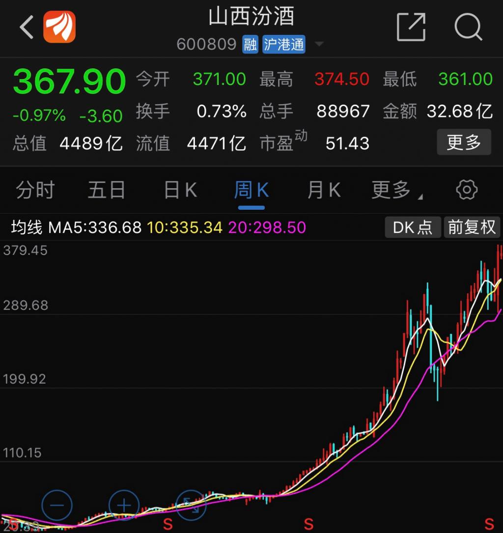 汾酒這堪比科技公司的高增長驚呆市場,7 月 13 日起,其股價連續大漲,一度創下 379 元歷史新高。