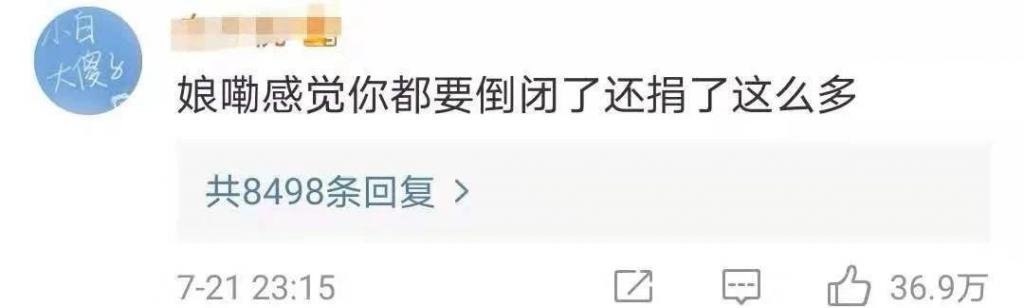 不僅如此,在微博的下方網友們也紛紛表示心疼鴻星爾克,稱其都快 " 倒閉 " 了,卻不忘捐一筆大款。