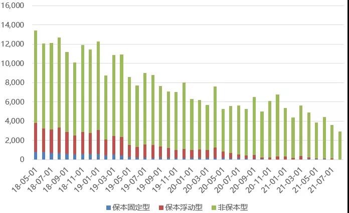 圖1:資管新規后各收益類型理財產品發行量均下行