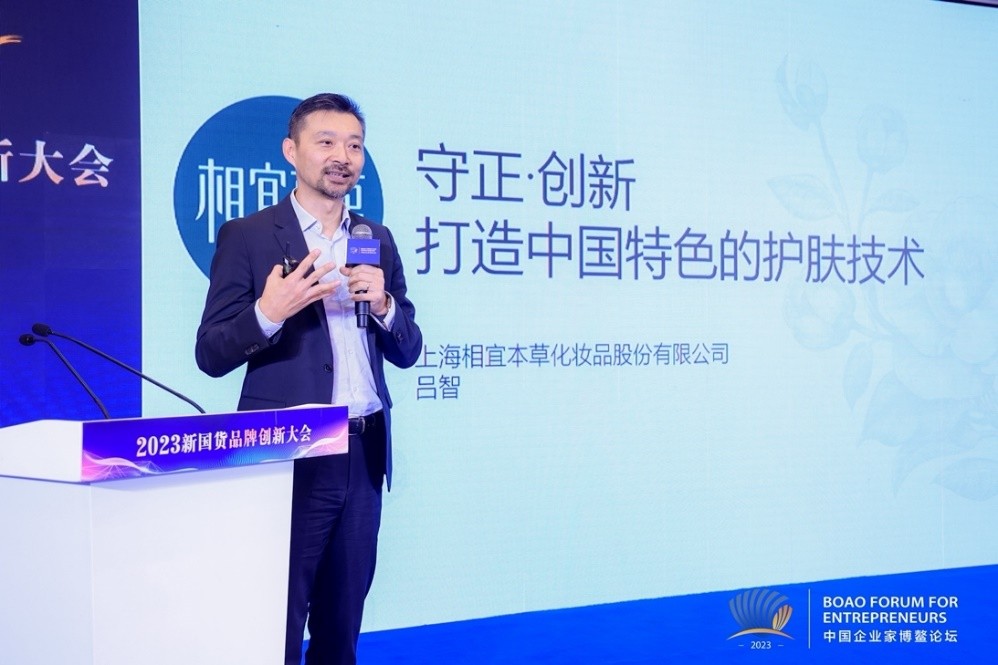 相宜本草副總裁、首席科學家呂智在“新國貨品牌創新大會”上致辭
