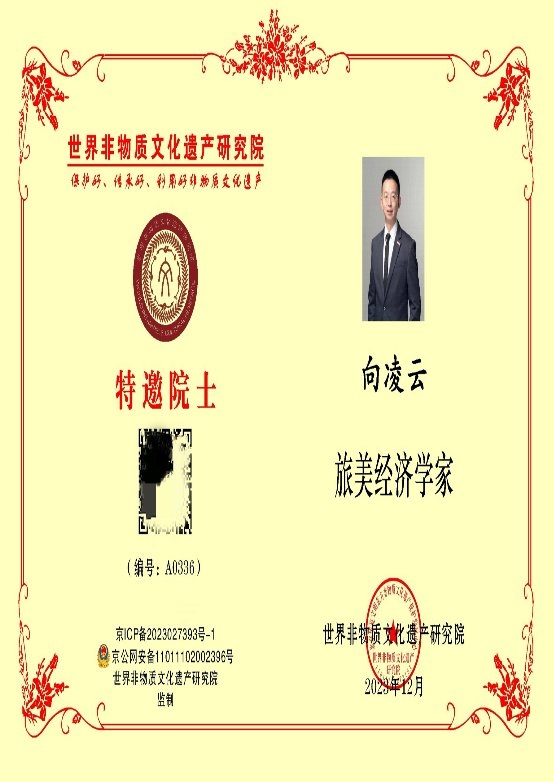 2023年12月12日,旅美經(jīng)濟(jì)學(xué)家向凌云獲世界非物質(zhì)文化遺產(chǎn)研究院聘為特邀院士。