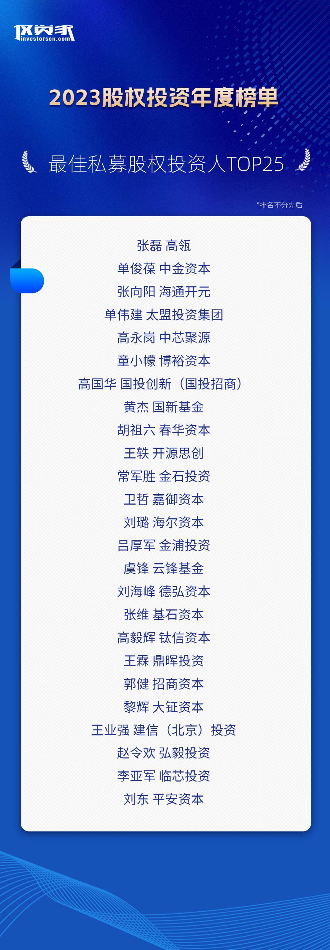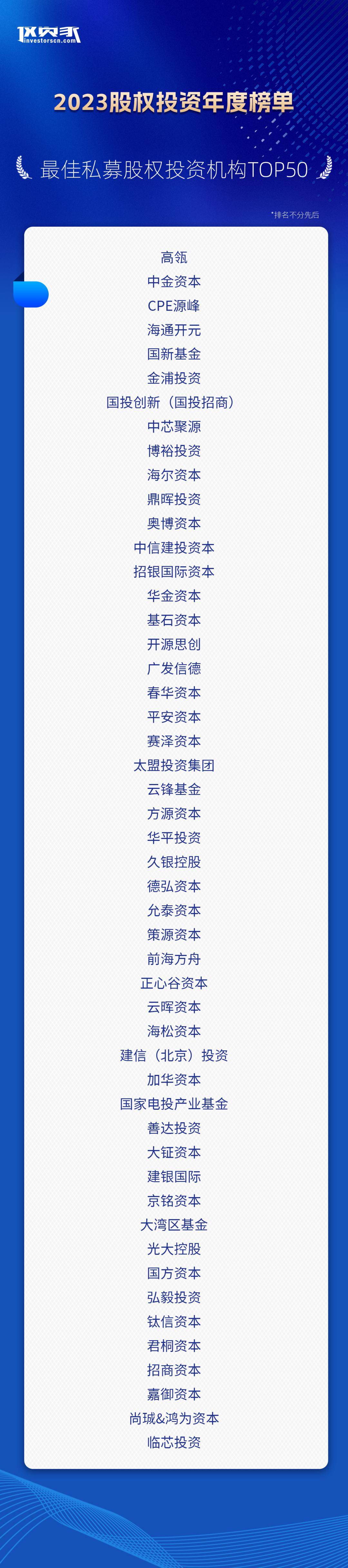 以下為“投資家網(wǎng)·2023股權(quán)投資年度榜單”: