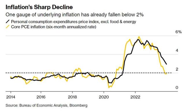 在另一方面,美國消費者支出仍然出人意料地強勁。毫無疑問,通脹的下滑給消費者支出帶來了大幅提振,而在強勁的消費者支出驅動之下,美國第四季度國內生產總值(GDP)年化季率高達3.3%,超出經濟學家普遍預期的2%,在2023年全年,美國經濟則增長2.5%,超出2022年實現的1.9%這一GDP增速。但是,消費支出的強勁趨勢仍可能讓一些人擔心價格壓力的美聯儲官員擔心美國物價可能將再次上升。