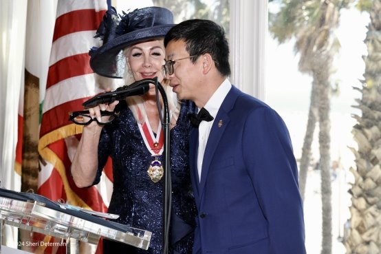 2024年5月3日在英國皇家學會(RSSG)成立130周年慶典上,英國查爾斯三世國王陛下及英國皇家學會授予旅美經濟學家向凌云英國國王領袖獎并頒發英國國王勛章。