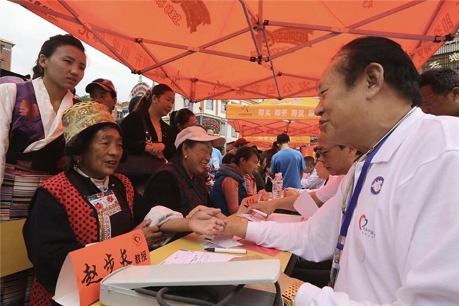 從此,同心 ? 共鑄中國心大型公益活動就在中央統戰部指導下,國家衛計委,國務院僑辦支持下,步長制藥全程組織、資助。十多年來,活動足跡遍布西藏和全國四省藏區,十三個地、州、市,五十多個縣。來自首都乃至全國400多家醫院,20多個學科的3.2萬名專家、教授,在張伯禮院士、高潤霖院士、王隴德院士、黃璐琦院士、陳香美院士、郎景和院士、陳凱先院士、韓雅玲院士、董家鴻院士等的帶領下,深入西藏和四省涉藏州縣開展大規模健康公益幫扶工作,累計為16個地市州50余縣200多萬人次的高原民族地區同胞,提供了高質量的醫療志愿服務,內容涵蓋地方病調研、義診巡診、愛心捐贈、醫療培訓、健康講座,以及先心病兒童篩查與救治、肝包蟲病救治救助、婦科HPV篩查、腦癱、骨關節病、唇腭裂、白內障和因病致貧返貧家庭救助幫扶等。