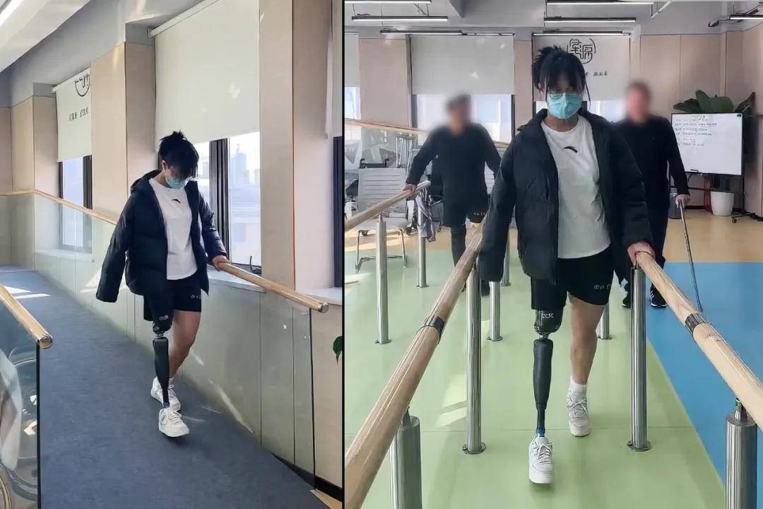 蔣裕燕安裝BrainCo智能仿生腿后行走