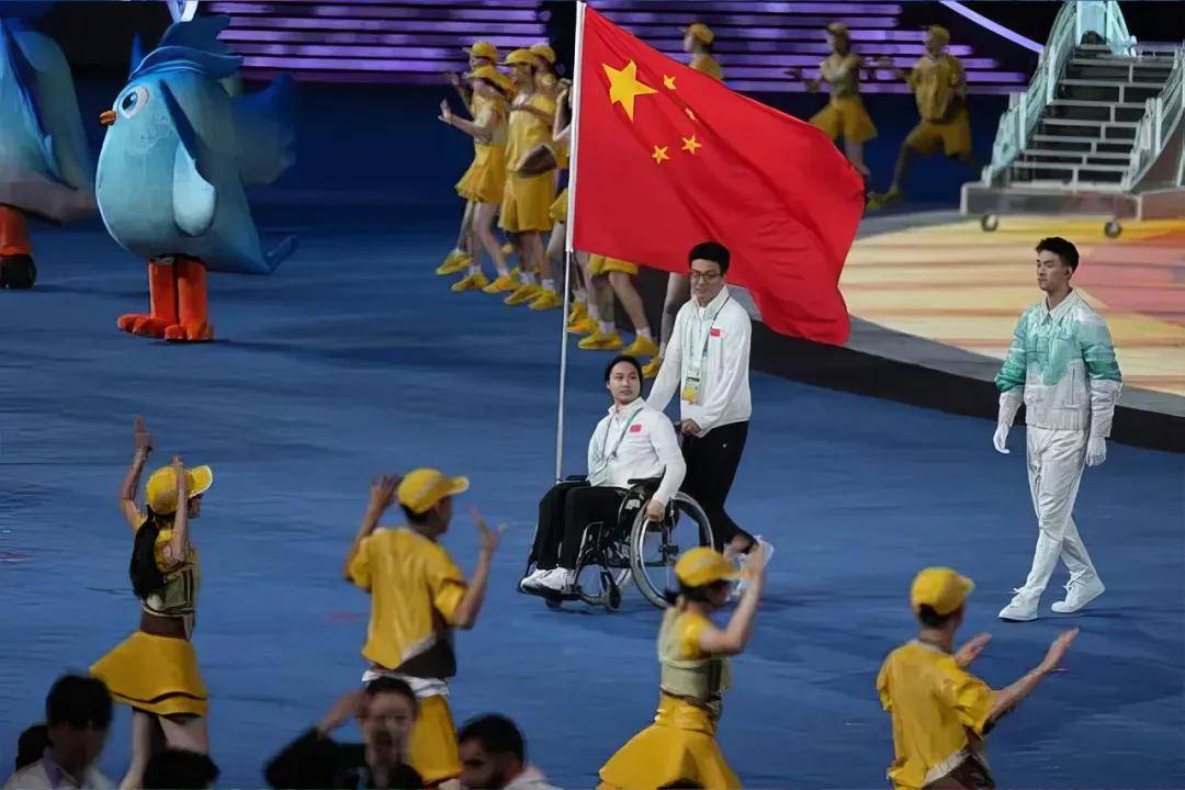 蔣裕燕在杭州第4屆亞殘運會閉幕式擔任中國體育代表團旗手,圖源:中國青年報