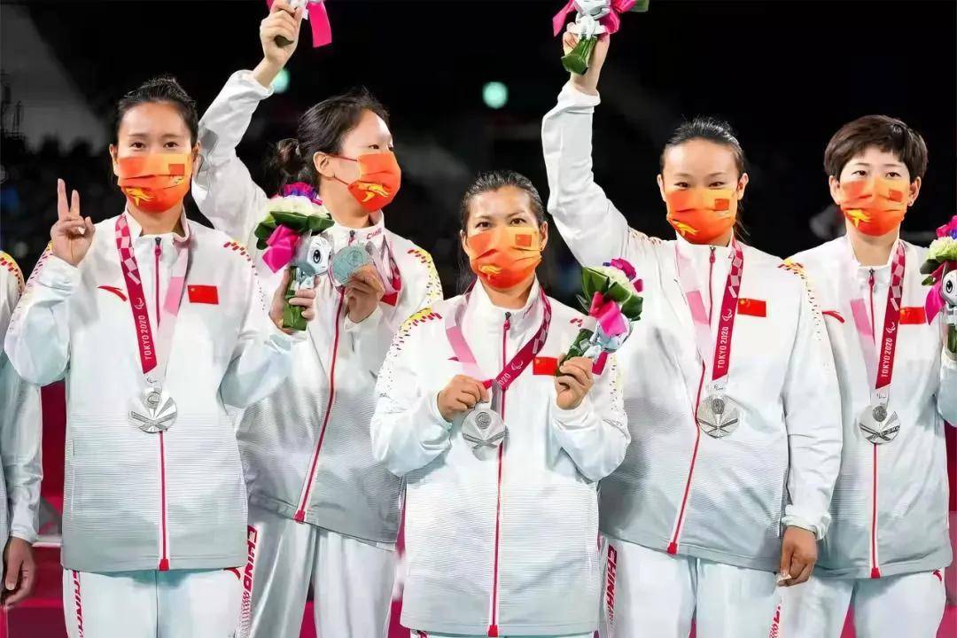 胡慧子(左二)與隊友獲得東京殘奧會女子坐式排球銀牌,圖源:“扶風融媒”微信公眾號