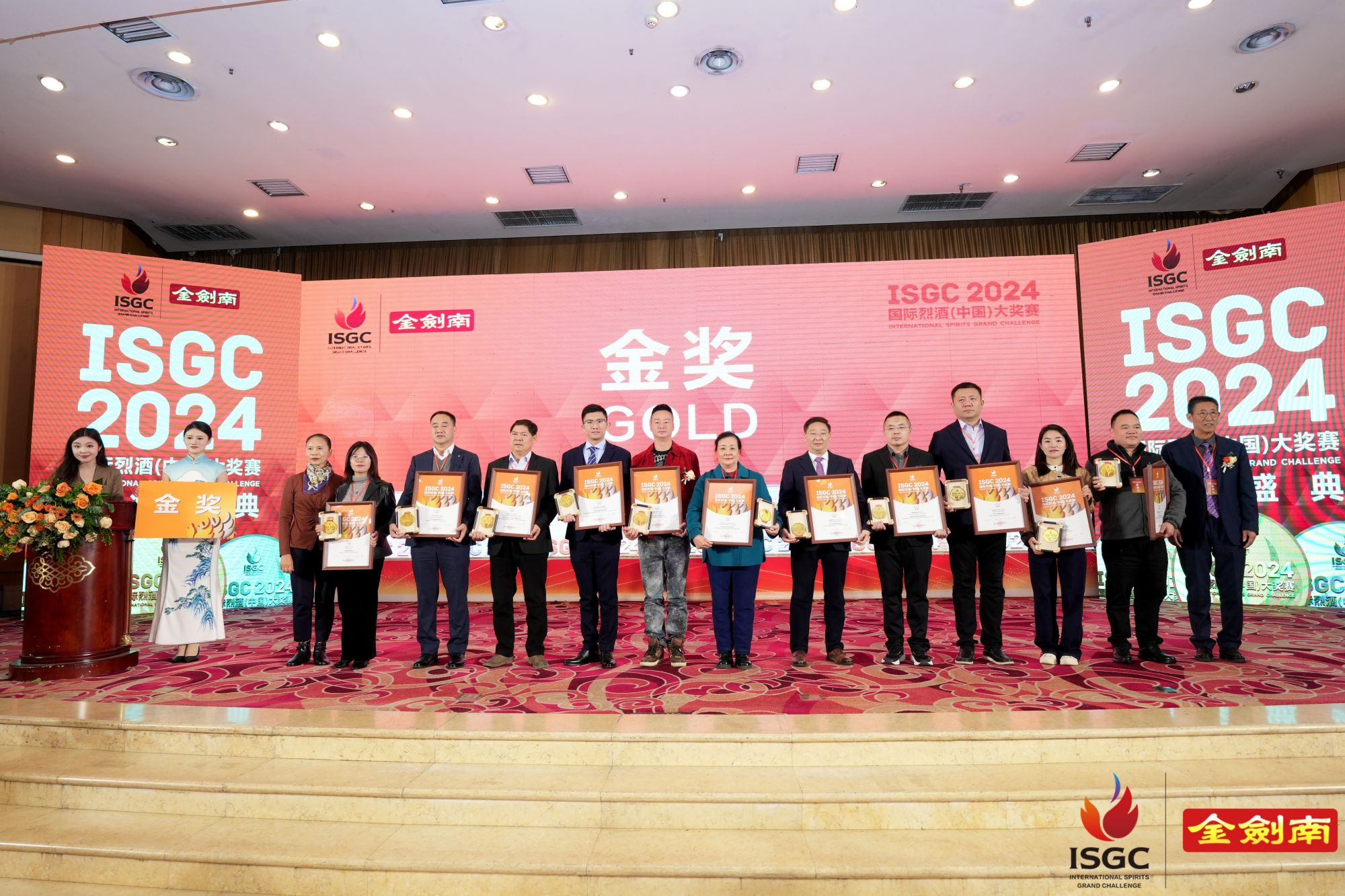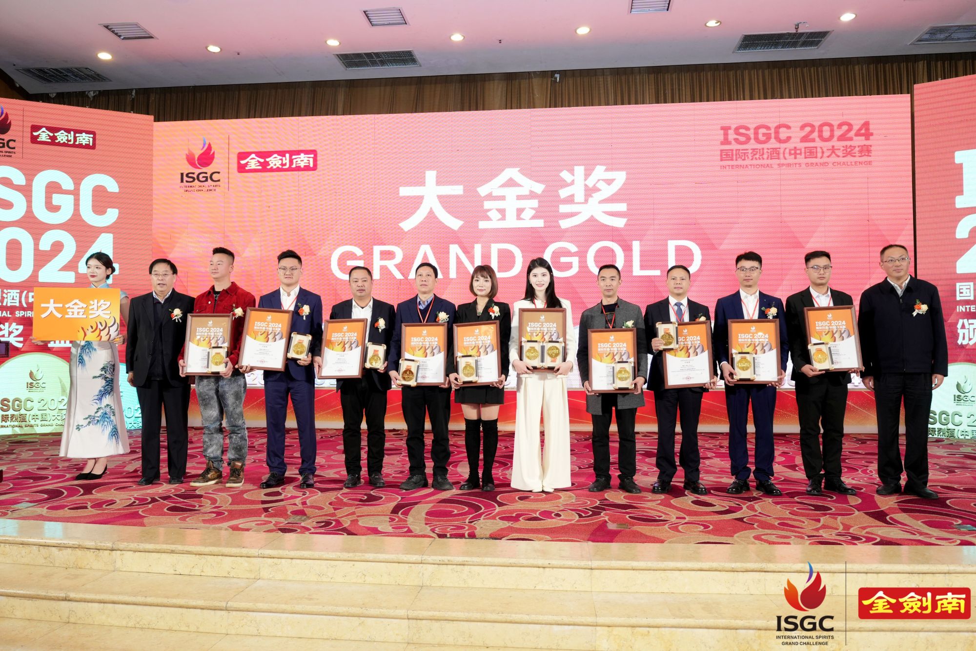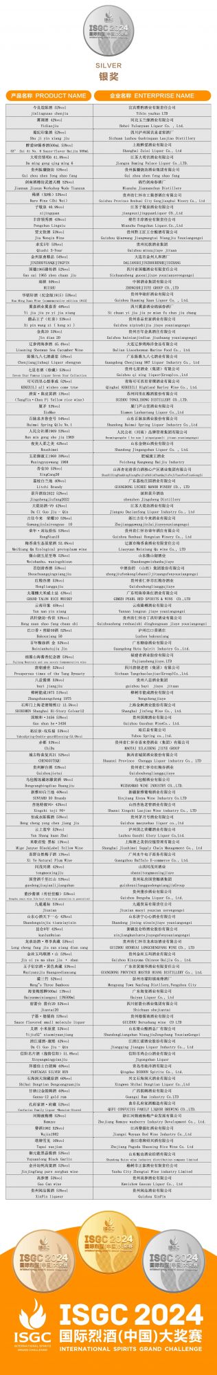 2024ISGC國際烈酒(中國)大獎賽頒獎盛典,由德陽市人民政府、國家葡萄酒及白酒露酒產品質量檢驗檢測中心、上海合作組織多功能經貿平臺酒業文旅服務工作委員會支持;中國副食流通協會、四川省一帶一路經貿合作促進會主辦;中國副食流通協會酒類專業委員會、國際烈酒(中國)大獎賽組委會、四川省酒業協會、酒新社承辦;中國輕工業酒類品質與安全重點實驗室以及中國香港白酒協會、貴州省酒業協會、河南省酒業協會、山東省食品工業協會、山西省食品工業協會、廣東省酒類行業協會、福建省酒業協會、江蘇省酒類行業協會、遼寧省釀酒協會、吉林省食品工業協會、浙江省酒類流通協會、陜西省糖酒副食流通協會、新疆釀酒工業協會、青海省酒業協會、內蒙古酒類流通協會、江西省酒類流通協會、湖北省酒類流通行業協會、重慶市酒類流通商會、內蒙古酒業商會、云南省昆明酒類行業協會、遼寧省大連飲品協會、貴州遵義市酒業協會、四川省德陽市酒業商會、河北省承德市酒業協會、山西呂梁市白酒協會、鄂爾多斯市酒業商會、貴州省仁懷市酒業協會、貴州省仁懷市醬酒產業協會等29家省市協會協辦,四川劍南春(集團)有限責任公司冠名。