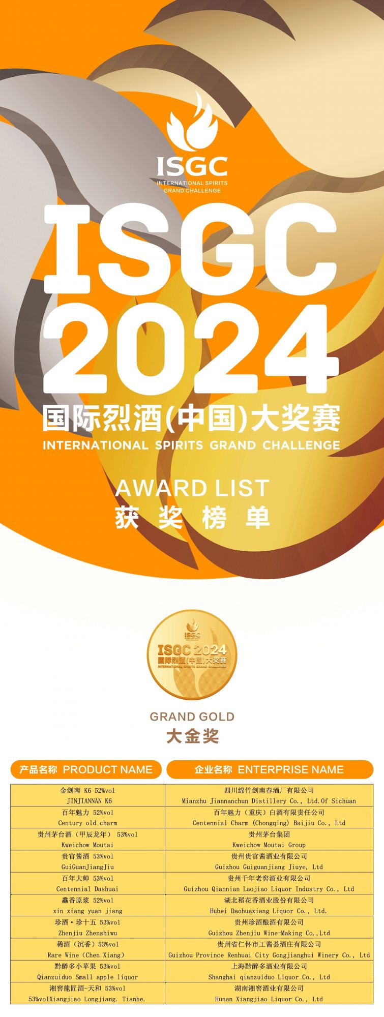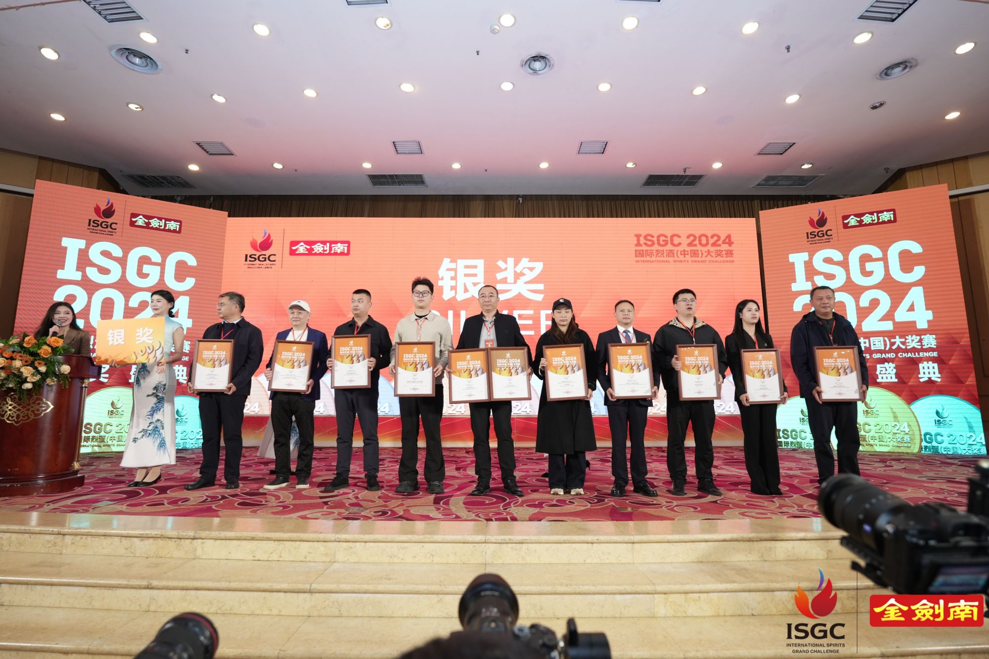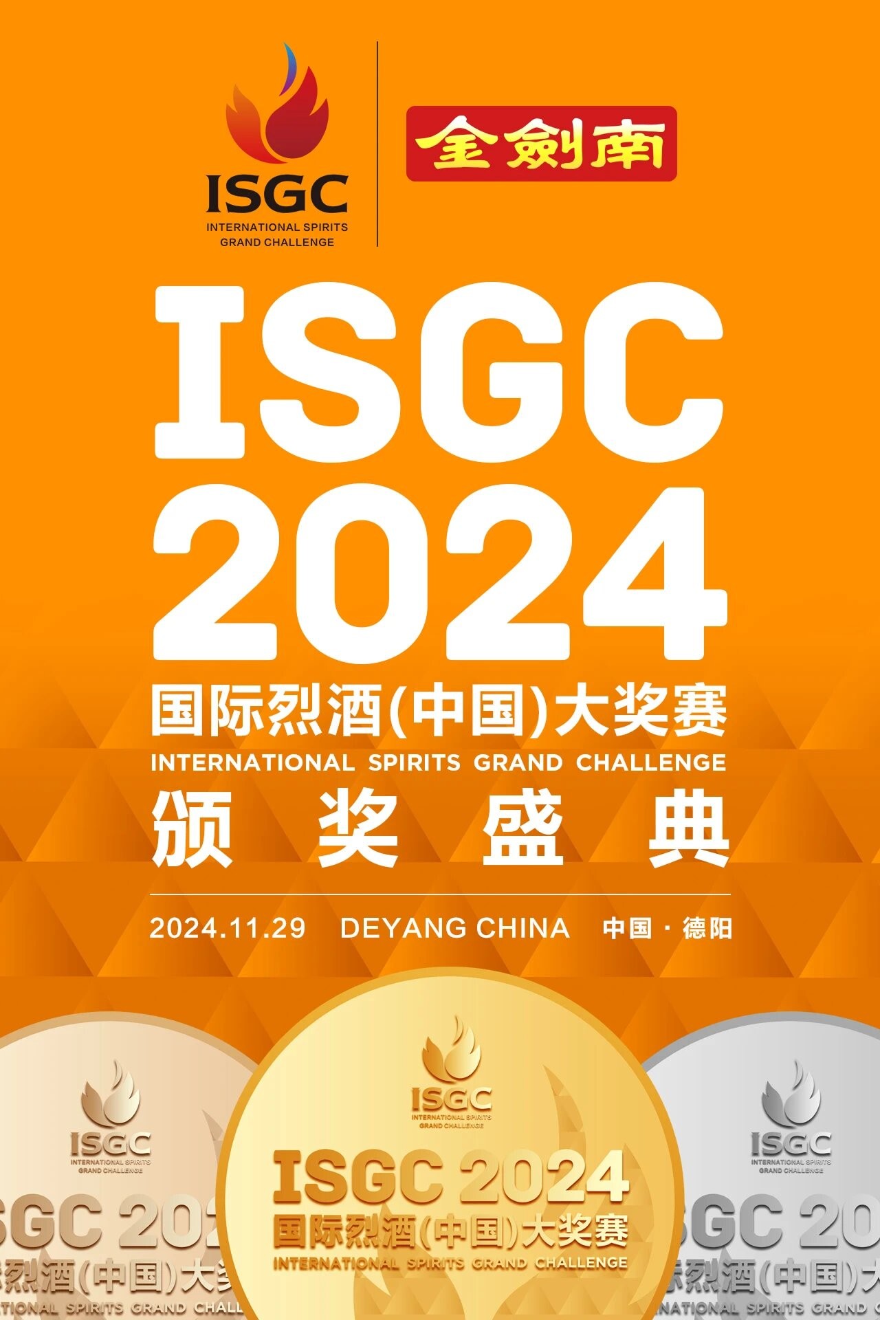 2024ISGC國際烈酒(中國)大獎賽頒獎盛典,由德陽市人民政府、國家葡萄酒及白酒露酒產品質量檢驗檢測中心、上海合作組織多功能經貿平臺酒業文旅服務工作委員會支持;中國副食流通協會、四川省一帶一路經貿合作促進會主辦;中國副食流通協會酒類專業委員會、國際烈酒(中國)大獎賽組委會、四川省酒業協會、酒新社承辦;中國輕工業酒類品質與安全重點實驗室以及中國香港白酒協會、貴州省酒業協會、河南省酒業協會、山東省食品工業協會、山西省食品工業協會、廣東省酒類行業協會、福建省酒業協會、江蘇省酒類行業協會、遼寧省釀酒協會、吉林省食品工業協會、浙江省酒類流通協會、陜西省糖酒副食流通協會、新疆釀酒工業協會、青海省酒業協會、內蒙古酒類流通協會、江西省酒類流通協會、湖北省酒類流通行業協會、重慶市酒類流通商會、內蒙古酒業商會、云南省昆明酒類行業協會、遼寧省大連飲品協會、貴州遵義市酒業協會、四川省德陽市酒業商會、河北省承德市酒業協會、山西呂梁市白酒協會、鄂爾多斯市酒業商會、貴州省仁懷市酒業協會、貴州省仁懷市醬酒產業協會等29家省市協會協辦,四川劍南春(集團)有限責任公司冠名。