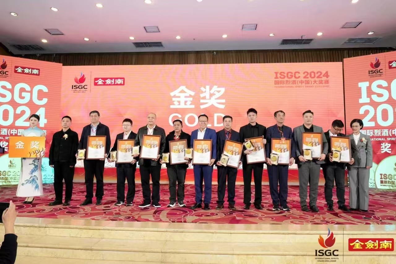 2024 ISGC國際烈酒(中國)大獎賽主題賽事,9月18日至 22日在德陽隆重舉行。本賽事實行百分制,設立大金獎、金獎、銀獎三個固定獎項,其獲獎比例不超過參賽樣品總數的30%:86-90分為銀獎(不含90分),90分以上為金獎,大金獎在金獎中產生,原則上在得分達到93分及以上的產品中產生,但比例不超過2%。依據嚴格的品評標準,100名評委對653款參賽烈酒進行了品評。賽后經過認真統計和校對,同時進行了公證,共有195款參賽產品脫穎而出。其中,大金獎 10 款,金獎72款,銀獎 88款,計170款;另有25款產品分獲包裝設計大賽的大金獎、金獎和銀獎,其中大金獎3款,金獎8 款,銀獎14款。特別是作為濃香型代表之一的中國名酒——“金劍南”在653款參賽的酒樣中,得到了最高分,位列榜首。