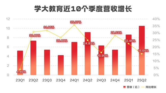 第四,學大教育的增長是盈利性增長,上半年的盈利表現甚至比營收表現更加亮眼。2023—2024年,學大教育歸母凈利潤分別為1.54億元、1.8億元,分別同比增長1035.24%、16.84%;今年上半年,歸母凈利潤為2.3億元,同比增長42.18%。特別是今年第二季度,抓住個性化教育業務的季節性高峰,盈利能力顯著提升。中國銀河證券研報認為,2025年以來,學大教育新增門店的半年爬坡期陸續結束,門店運營逐步穩定,毛利率逐季提升,費用率持續優化。